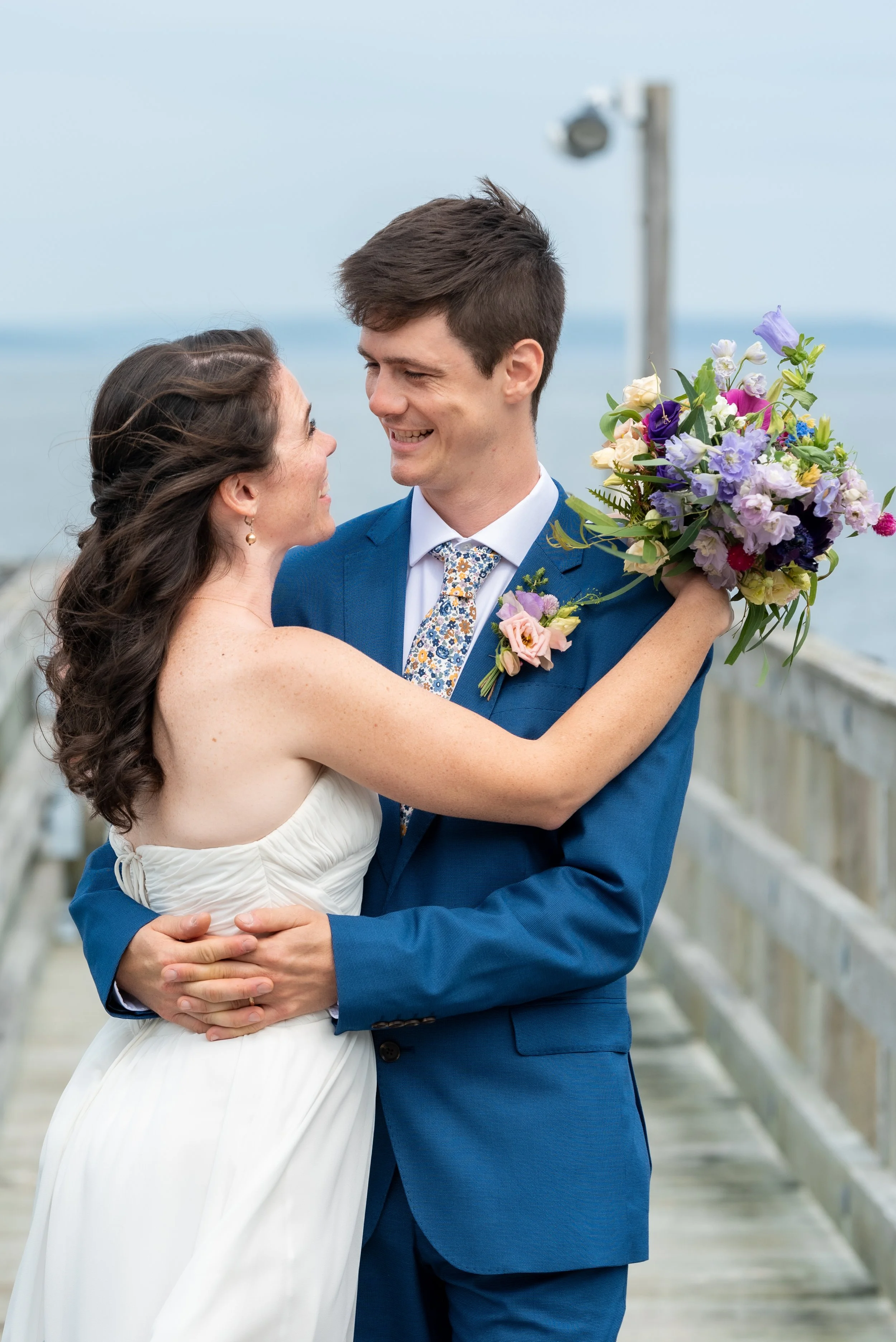 Katie was a substitute teacher at the school where Schuyler was working as an ed tech. He caught her eye and she was thrilled when they crossed paths at a cafe downtown a few days later. Their journey together has taken them all around central, southern, and midcoast Maine. One pandemic, two cats, two mountain bikes, two masters programs, and a million adventures later they were married at an intimate Bar Harbor Yacht Club ceremony followed by a large reception at Schuyler’s family home.
